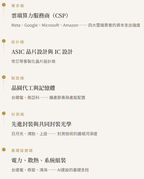 從需求端的CSP資本支出,一路到製造端、封測端、基礎設施端,理解整條產業鏈的財報樣貌