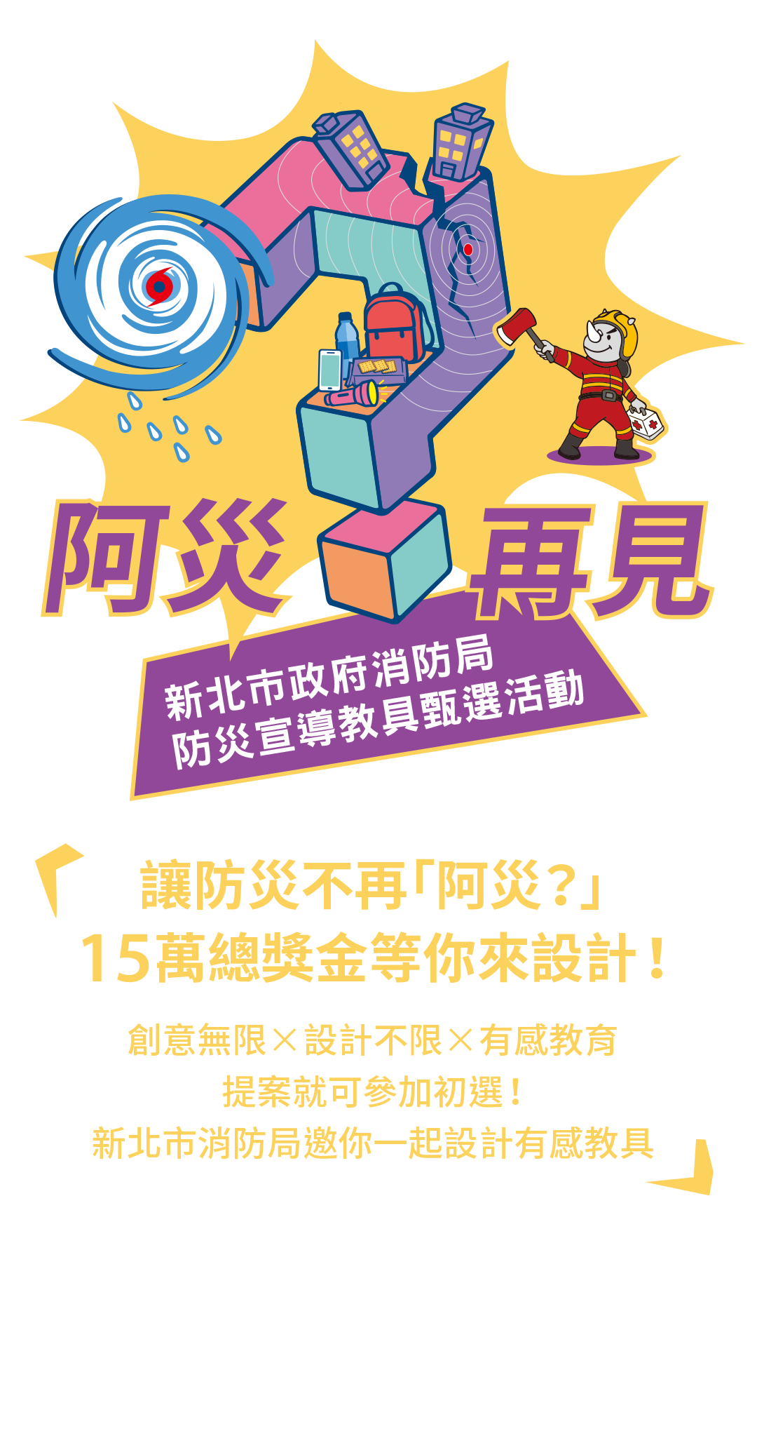 跟阿災說再見、讓防災知識不再「阿災?」,歡迎各方設計好手來參加-總獎勵價值突破新臺幣15萬元,等你來設計!
