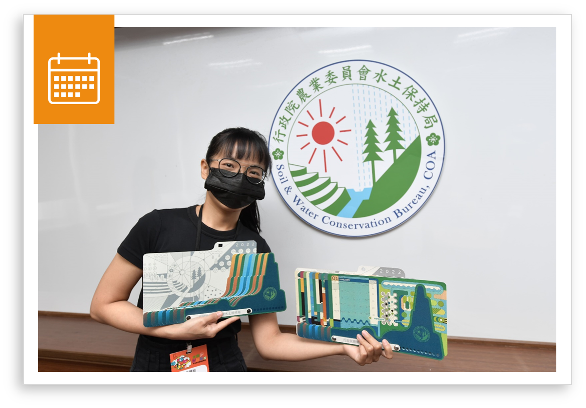 另外,在日期下方有加入農曆日期與節氣,方便不同的使用需求。我們希望能將這份對水保的關心,用簡單樸實的方式傳遞給每個台灣人。"
