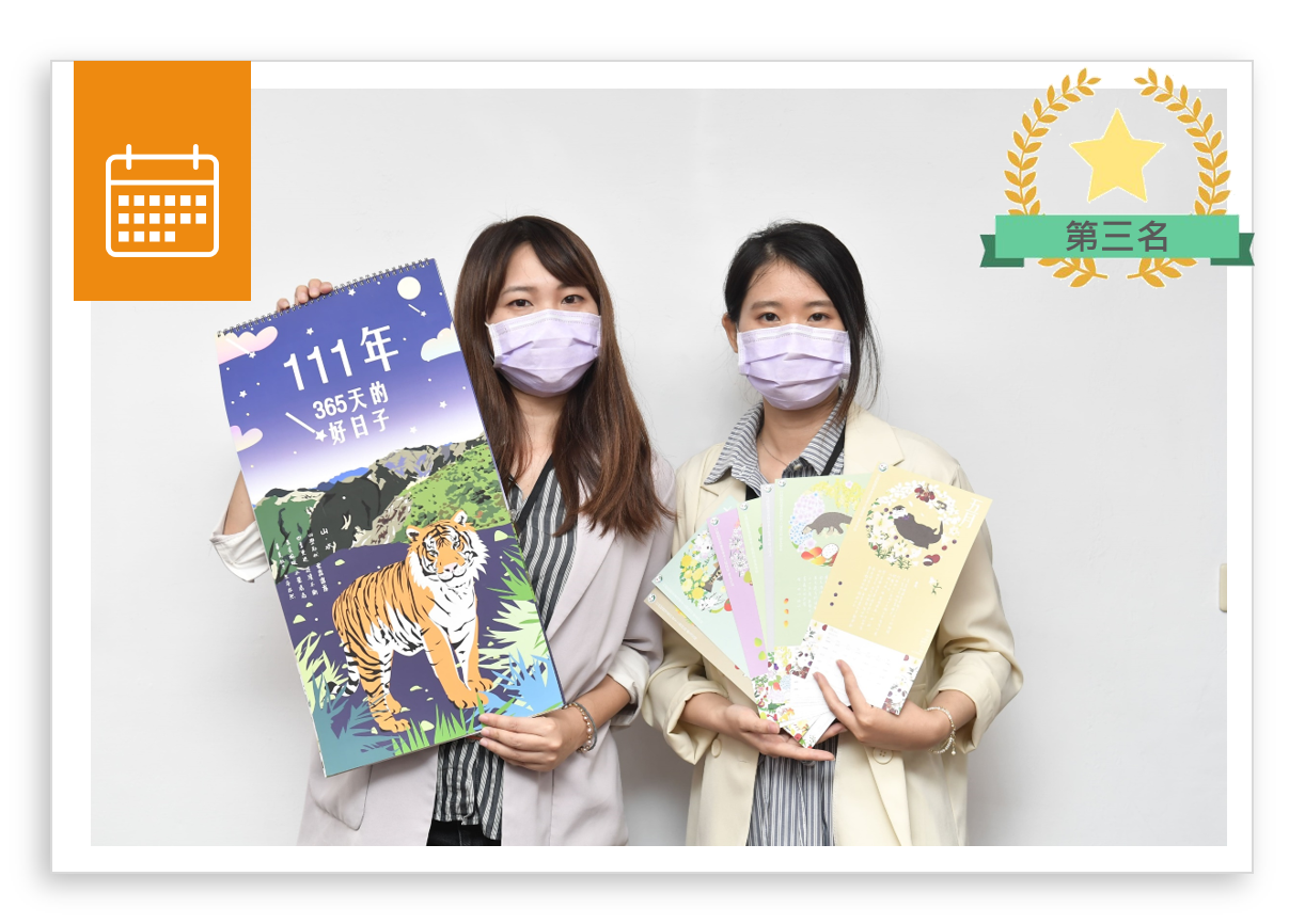以當季限定的花圈設計,時令花卉蔬果點綴月曆,採插畫式擬真卡通風格,讓瀕危動物與水保結合,作品選用低飽和度色系,使全齡化擴展更為徹底,透過獨家自創手寫詩句,文藝清新妝點生活意趣。